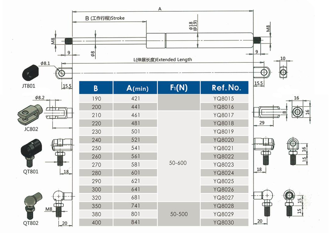 汽車氣彈簧-舉升氣彈簧YQ8/18-2