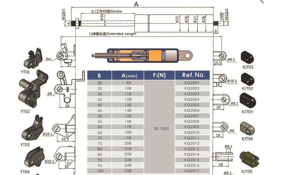 注:由于氣彈簧是非標(biāo)準(zhǔn)的,以上僅為型號的一部分。我們可以根據(jù)客戶的要求定制。